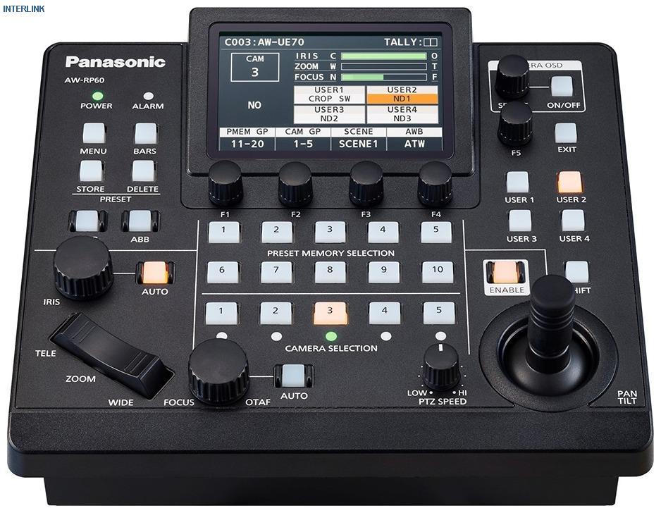 Новый дисплей 3.5-дюйма для управления PTZ-камерами которым оснащен пульт AW-RP60 помогает упростить работу как с PTZ-камерами, так и с самой панелью управления AW-RP60, благодаря тому, что на нём отображается большое количество информации. AW-RP60 новый джойстик-манипулятор благодаря новой тактильной отдаче обеспечивает высокий уровень удобства при управлении PTZ-камерами Panasonic. Гибкие возможности кастомизации пользовательского интерфейса AW-RP60 оснащён user-клавишами на которые возможно назначить различные функции для быстрого доступа к ним. Появилась возможность корректировать каждый из 100 созданных ранее пресетов с помощью приложения для РС. Эти возможности позволяют управлять пультом и камерами с большим удобством чем прежде, а это значит, что AW-RP60 может подойти live-вещателям, при работе в учебных студиях и при развертывании компактной площадки на базе PTZ-камер Panasonic.