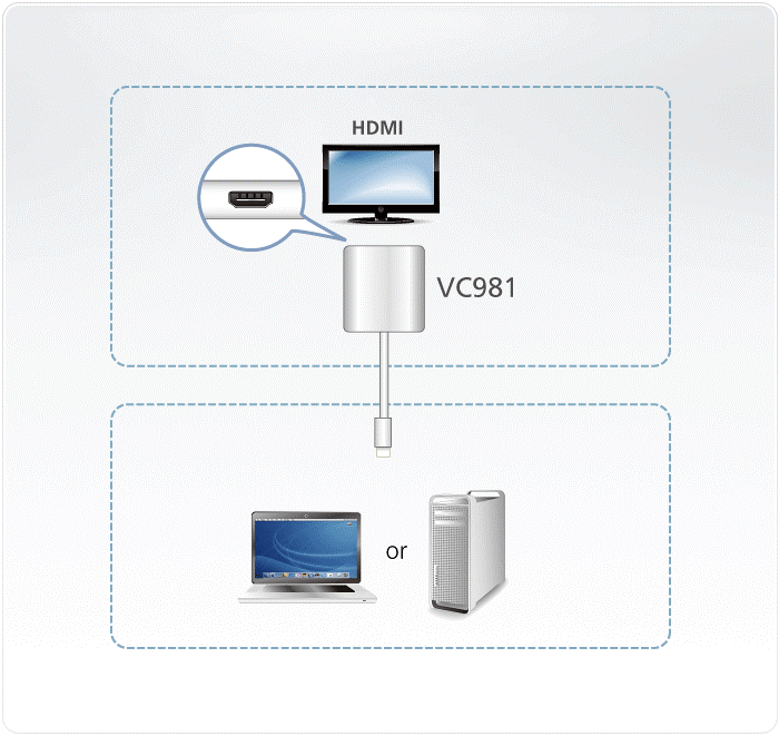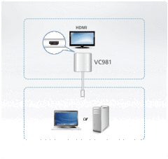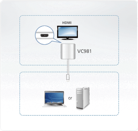 VC981 – Активный конвертер ATEN VC981 позволяет Вам подсоединить устройство оснащенное выводом Mini DisplayPort/DisplayPort к HDMI-входу 4K телевизора или другого дисплея.