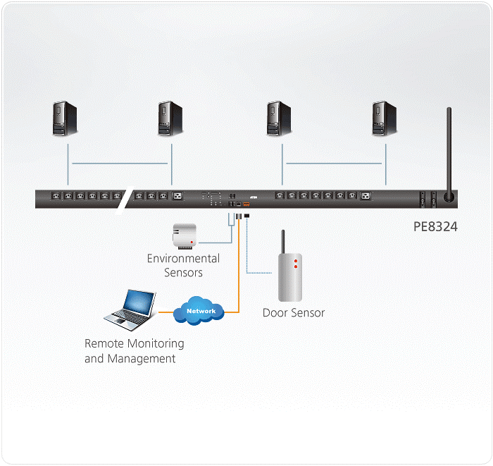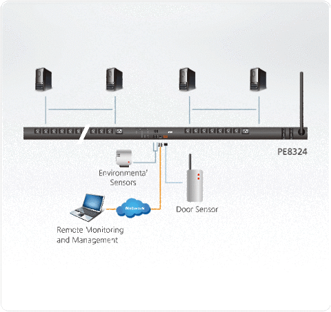 PE8324G обеспечивает удаленное управление питанием и отслеживание состояния питания в реальном времени, позволяя контролировать и отслеживать состояние питания подключенных к PDU устройств на уровне PDU, блока или отдельных розеток практически из любой точки мира с помощью соединения TCP/IP.