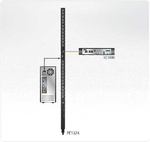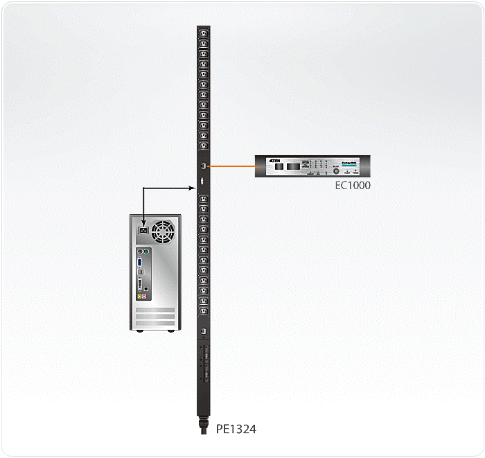 PE1324G-AX – Блок распределения питания PDU ATEN PE1324G может быть подключен к аналитической системе, основанной на Energy Box EC1000 c программным обеспечением «eco Sensors». Система позволяет отслеживать ток и условия работы Energy PDU в реальном времени. Контроль и управление можно вести локально с передней панели EC1000 в стойке, либо удаленно – с помощью веб-интерфейса. Таким образом, с минимальными усилиями серверная комната становится энергоэффективной.