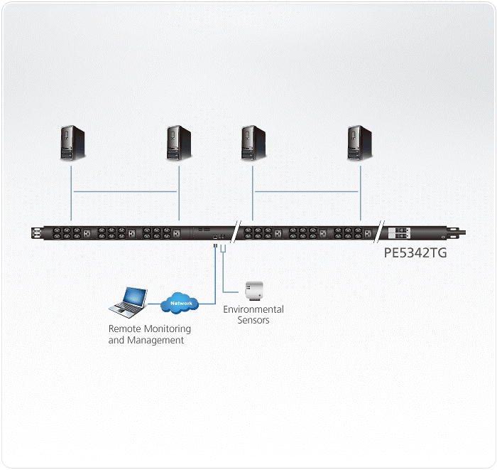 PE5342TG-AX – Блок распределения питания ATEN PE5342TG обеспечивает измерение питания в реальном времени – позволяя отслеживать состояние питания подключенных к PDU устройств на уровне PDU или блока практически из любой точки мира по TCP/IP. Он также составляет комплексные аналитические отчеты по питанию – предоставляя точные сведения о силе тока, напряжении, мощности и ватт-часах в реальном времени.