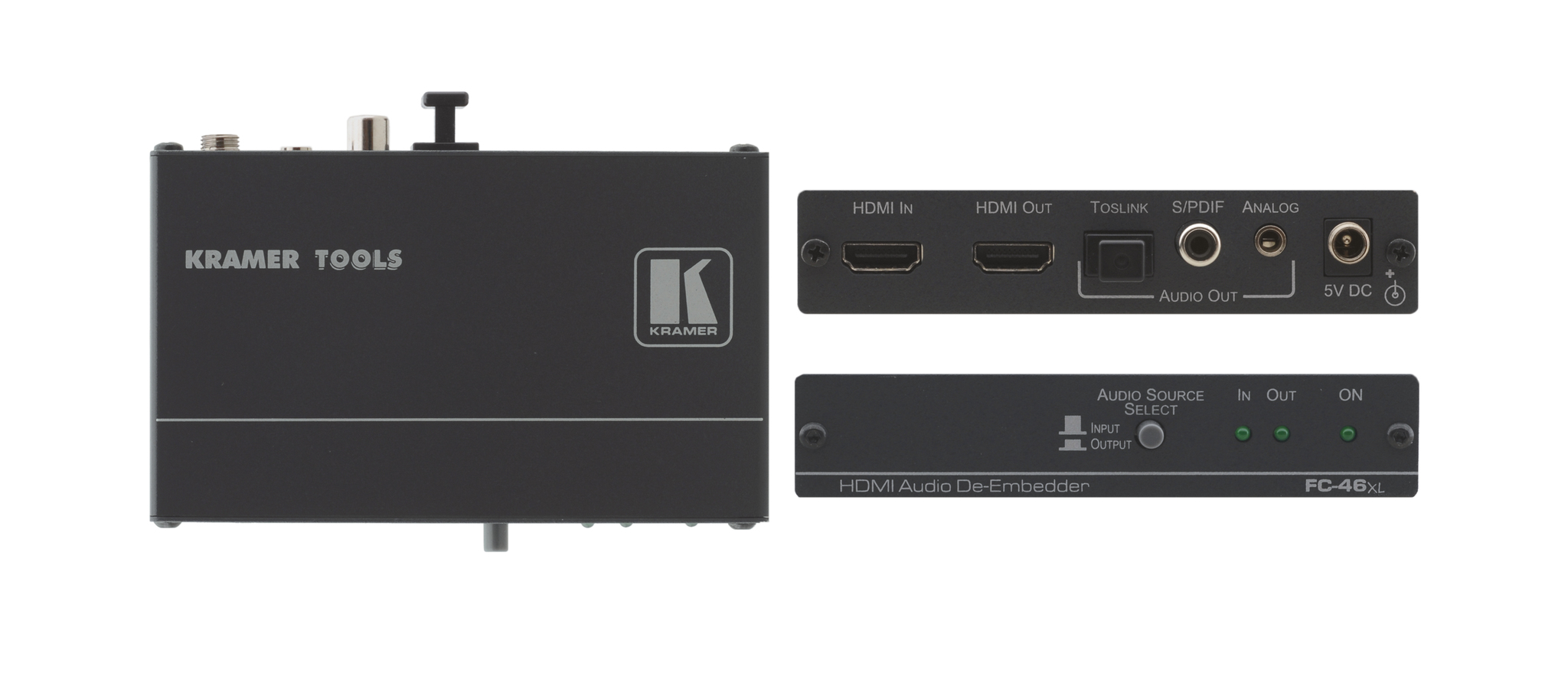 FC-46xl - высококачественное устройство для извлечения аудиосигнала из цифрового сигнала HDMI. Прибор выделяет аудиосигнал из входного сигнала HDMI или из возвратного аудиоканала HDMI-выхода. Сигнал выдается одновременно на выходы S/PDIF, TOSLINK® и аналоговый.