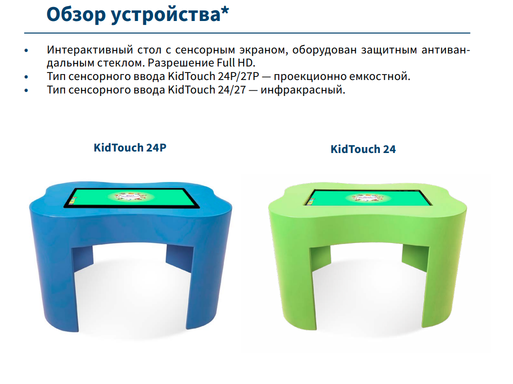 Детский интерактивный стол KidTouch 27 (TKCNV1INT27) 27", FHD (1920х1080), IR, 10 касаний, Intel Pentium, DDR4 4Гб, SSD 128Гб, WiFi-модуль, USB 2.0 х 2, ПО Вселенная Мультитач, Windows/Linux