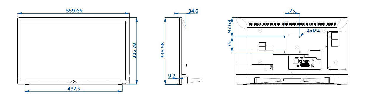 24" Профессиональный ТВ, CMND Control, 250 кд/м², 1366 x 768р, VGA, HDMI 2x , DVB-C/T/T2 HEVC, RF, USB