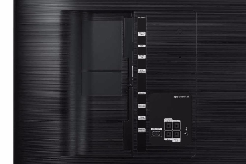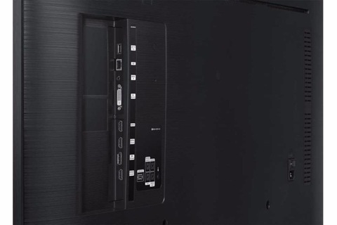 Управлять настройками дисплея Samsung QM55H можно как с помощью кнопок на самой панели, ДУ-пульта, так и по локальной сети или через интернет, для чего в панелях предусмотрен порт RS-232C.