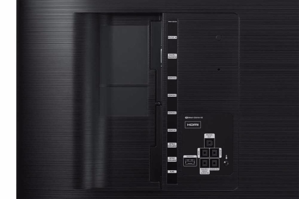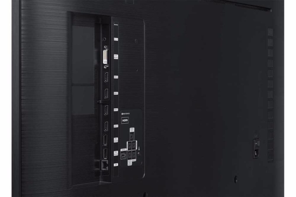 Управлять настройками дисплея Samsung QM75F можно как с помощью кнопок на самой панели, ДУ-пульта, так и по локальной сети или через интернет, для чего в панелях предусмотрен порт RS-232C.