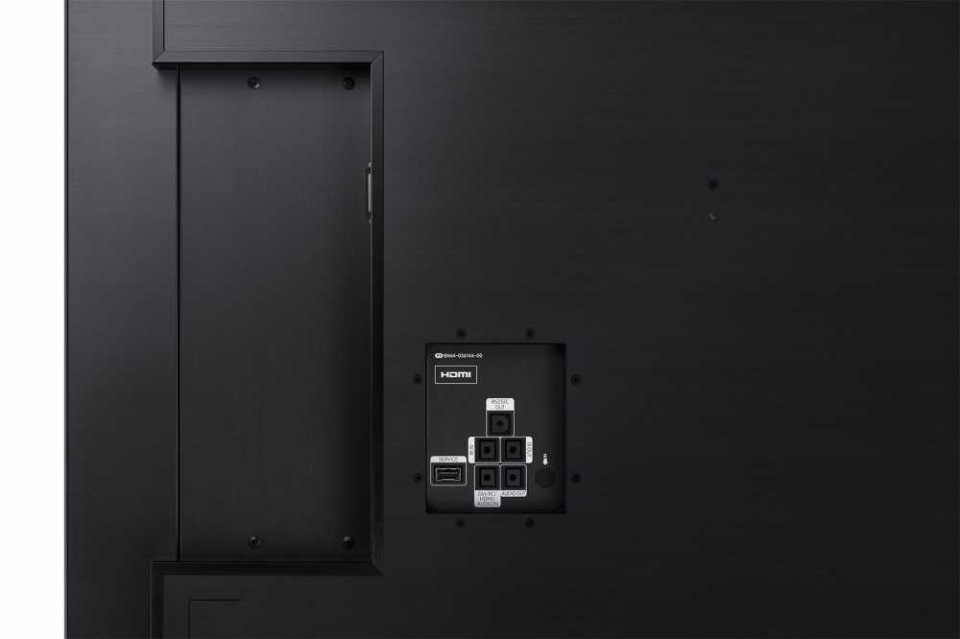 Управлять настройками дисплея Samsung QM98F можно как с помощью кнопок на самой панели, ДУ-пульта, так и по локальной сети или через интернет, для чего в панелях предусмотрен порт RS-232C.