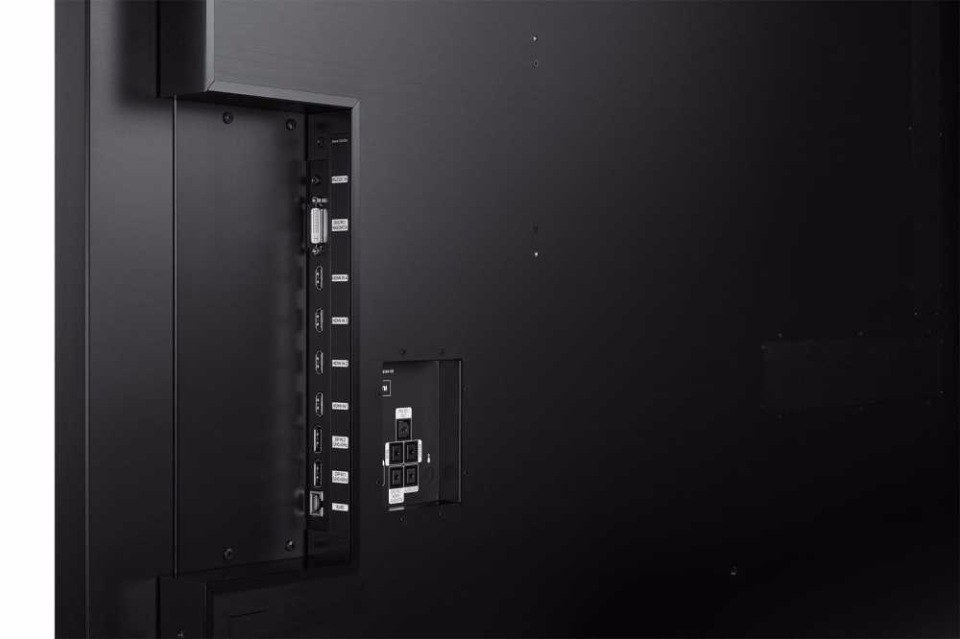 Широкие возможности по подключению различных устройств обеспечиваются наличием различных интерфейсов: 4xHDMI, 2xDisplayPort, RS232S, RJ45. На экран дисплея можно вывести четыре изображения с четырёх отдельных источников. Для этого не требуется никакого дополнительного оборудование от сторонних производителей. Экран не обязательно делить на четыре равных прямоугольника, можно использовать различные сценарии под запросы клиента.