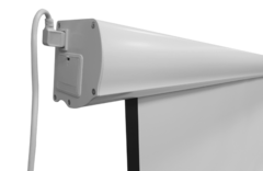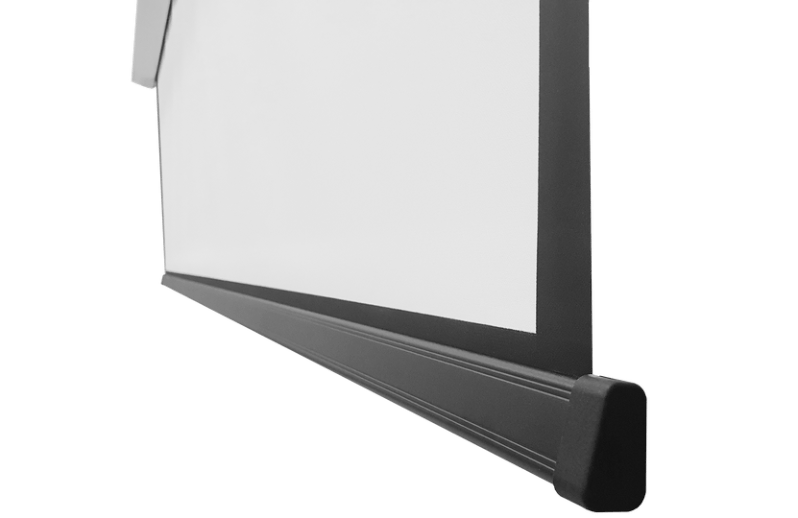 Треугольная алюминиевая планка в нижней части полотна при сворачивании экрана убирается в корпус и придает инсталляции аккуратный внешний вид.
