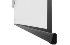 Треугольная алюминиевая планка в нижней части полотна при сворачивании экрана убирается в корпус и придает инсталляции аккуратный внешний вид.
