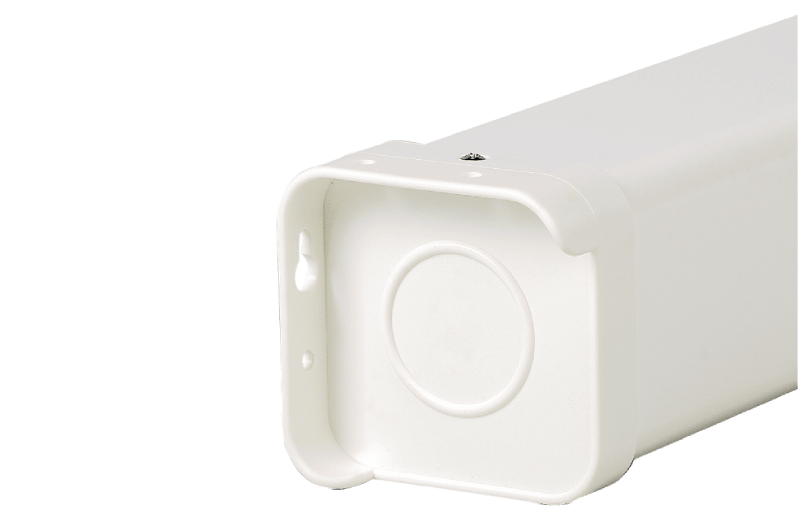Корпус экрана с квадратным сечением выполнен из стали с белым полимерным покрытием. Торцевые заглушки корпуса изготовлены из ударопрочного белого пластика или металла для экрана с большим размером