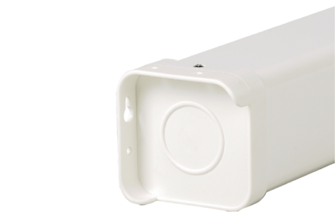 Корпус экрана с квадратным сечением выполнен из стали с белым полимерным покрытием. Торцевые заглушки корпуса изготовлены из ударопрочного белого пластика или металла для экрана с большим размером