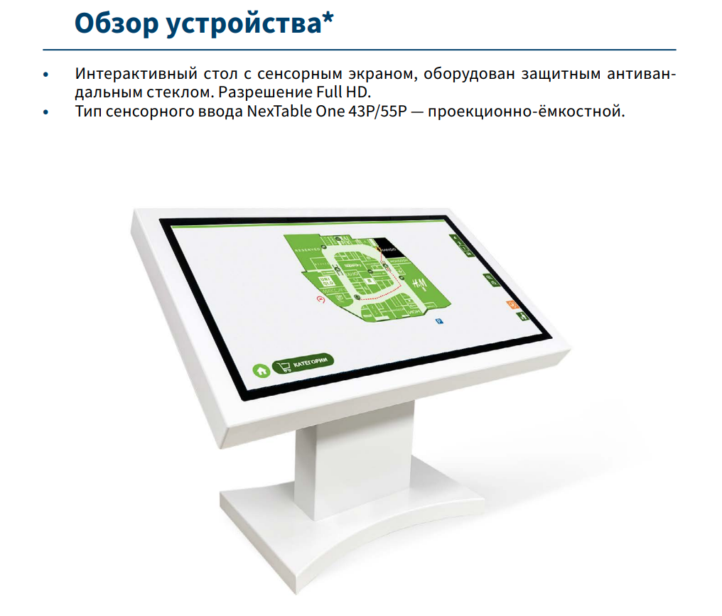 Интерактивный стол NexTable One 55P (TSONV1PNT55) 55", FHD (1920х1080), PCAP, 10 касаний,Intel Pentium, DDR4 4Гб, SSD 128Гб, WiFi-модуль, USB , Windows/Linux