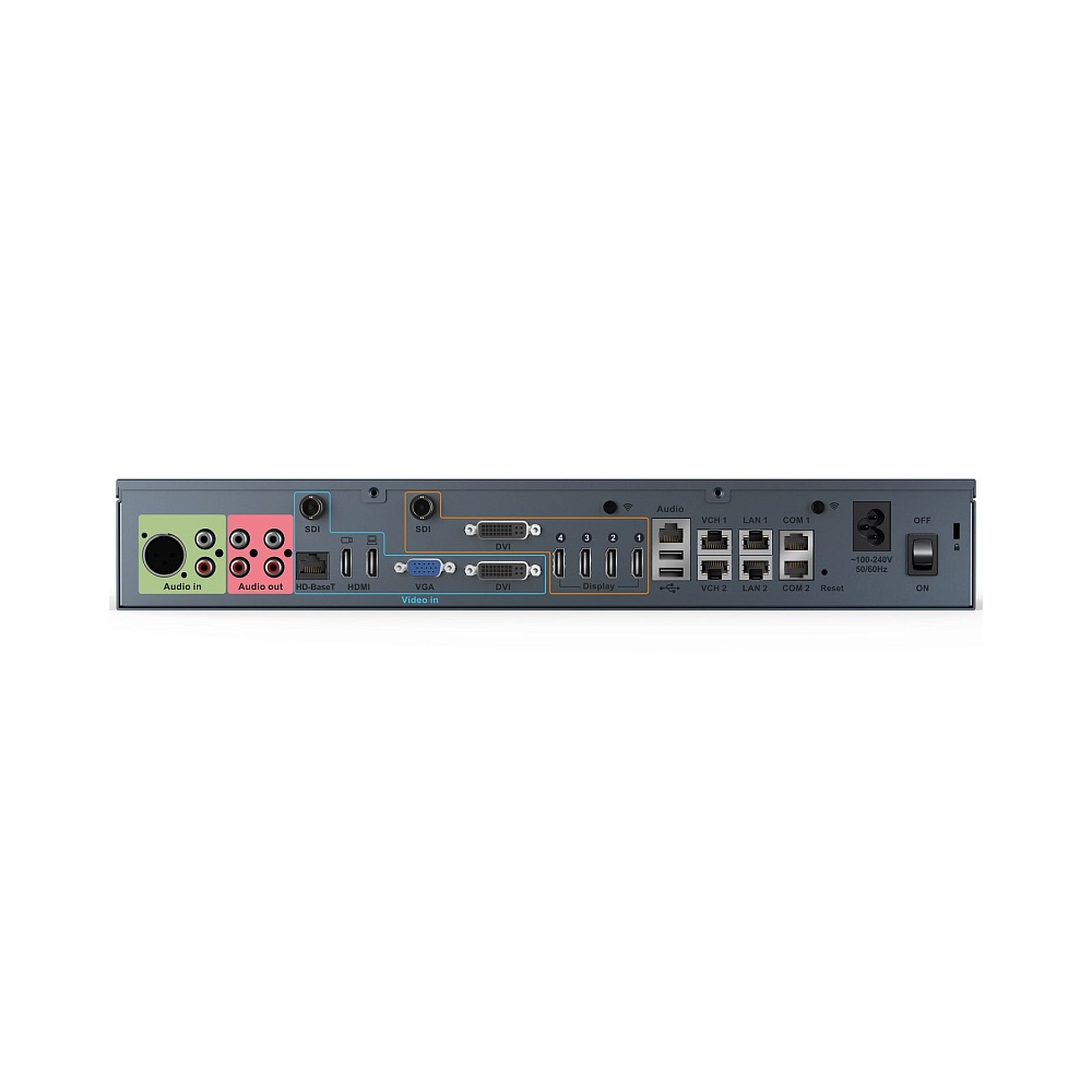 Интеграционный кодек ВКС для конференц-залов различных типов. Раздельная конструкция обеспечивает гибкость установки. Устройство комплектуется кронштейнами для монтажа в шкаф, стену или под стол, а также оснащено обширным набором стандартных интерфейсов для встраивания в существующее аудио- и видео-окружение. В сочетании с видеокамерами, микрофонами и другой периферией формирует эффективное завершенное решение с возможностью коммутации и композиции видео. Кодек хорошо совместим с решениями других вендоров по протоколам SIP/H.323, а в сочетании с аксессуарами Yealink поддерживает трансляцию контента и режим BYOD.