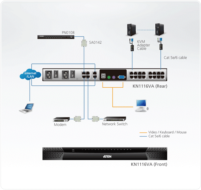 KN1116VA-AX-G – Cat 5 KVM Переключатель ATEN KN1116VA с доступом по IP нового поколения КВМ-коммутаторов серии KN позволяет управлять всем центром обработки данных как с локальной консоли так и практически из любой точки сети, используя веб-браузер.