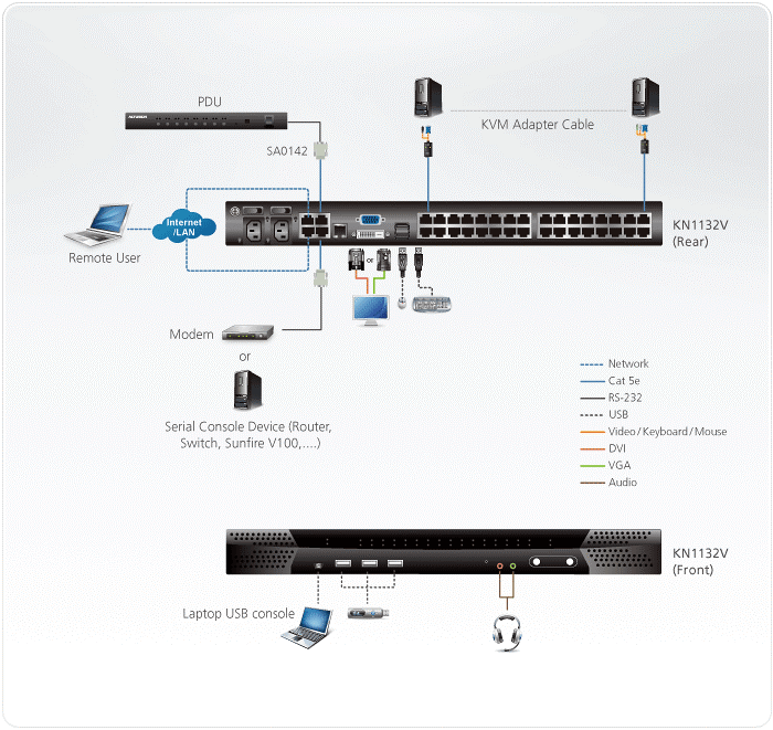 ATEN KN1132V – IP KVM Переключатель с доступом по Cat 5 и поддержкой с 1-го локального и 1-го удаленного пользователя