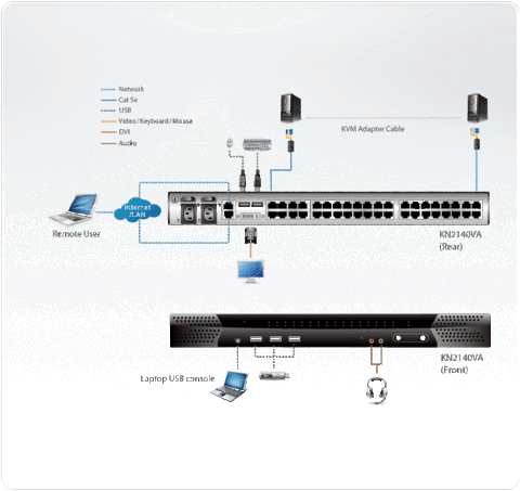 Продукция серии KN предоставляет пользователям доступ с локальной консоли, а также удаленный доступ по IP для управления и обращения к содержимому Вашего центра обработки данных с помощью локальной сети.