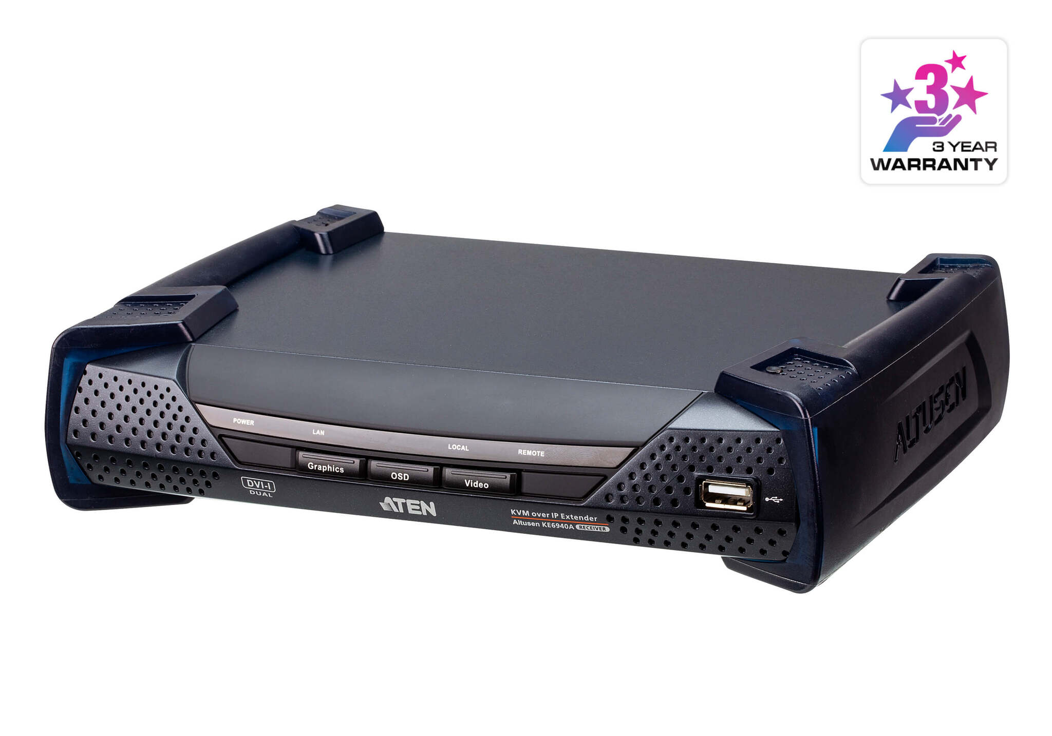 KVM-удлинитель с доступом по IP модели KE6940A состоит из высокопроизводительного IP-передатчика (KE6940AT), который подключается к компьютеру и приемника (KE6940AR), обеспечивающего консольный доступ из отдельного расположения. Он предоставляет доступ с удаленной USB-консоли (включающей USB-клавиатуру, мышь и DVI-монитор) к компьютерной системе через интрасеть, позволяя пользователям расположить компьютеры в безопасной среде с контролируемой температурой, изолированной от рабочей среды пользователя.