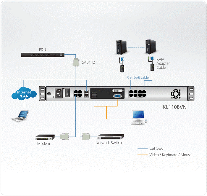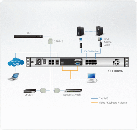 ATEN KL1108VN – устройство управления, обеспечивающее безопасный доступ к 8 компьютерам как с локальной консоли, так и удаленной с использованием IP-соединений и веб-браузера.