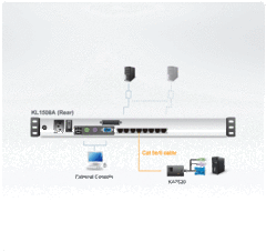 ATEN KL1508AN – 8 портовый KVM Переключатель с 19" KVM консолью, Dual Rail, Cat 5e/6