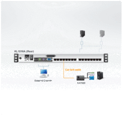 ATEN KL1516AN – 16 портовый KVM Переключатель с 19" KVM консолью, Dual Rail, Cat 5e/6