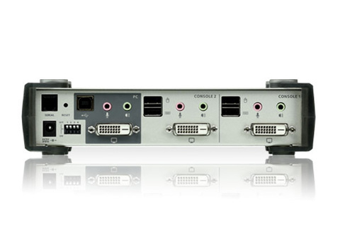 Расширяет возможность управления компьютером с интерфейсом DVI попеременно между двумя пользовательскими консолями, предоставляя общий доступ