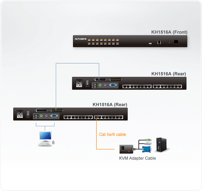 Установка KH1516A является одним из лучших и наиболее экономных решений, предлагаемых ATEN для рынка малых и средних предприятий. Нет лучшего способа сэкономить время, рабочее пространство и деньги, чем при помощи KVM-переключателя KH1516A.
