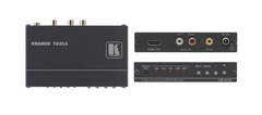 Kramer VP-410 – масштабатор CV и аудио сигналов в HDMI. Выполняет масштабирование видеосигнала, вводит аудиосигнал в цифровой поток и выдает результат в формате HDMI. По композитному вхоИК прибор работает с цветными сигналами стандарта PAL, SECAM или NTSC 3.58. Иные стандарты (например, PAL60/NTSC4.43) и черно-белый видеосигнал прибором не поддерживается. Имеется встроенный регулятор параметров изображения: насыщенности, четкости, яркости, контрастности, цветового тона, автоматическая синхронизация, соотношение сторон, растянутая развертка, шумоподавление.