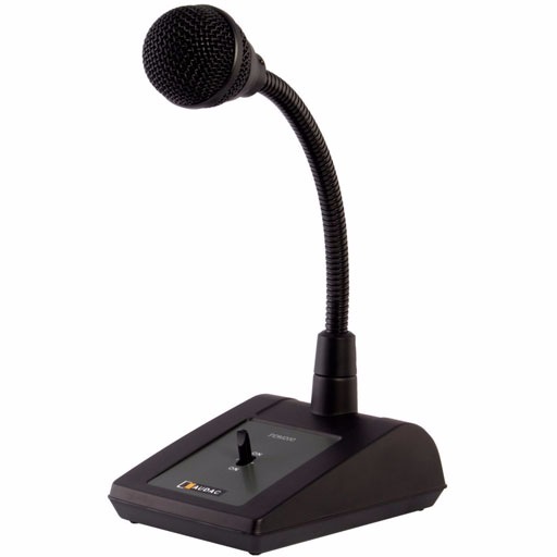 PDM200 – пейджинговый динамический микрофон с гибким кронштейном на устойчивой платформе. Оснащен трехпозиционным выключателем и системой управления звуковыми сигналами. Совместим с серией приборов COM, может также работать и с другим оборудованием. Длина соединительного кабеля 1,5 м. Устройство отлично подходит для применения на крупных объектах, где используется система голосового оповещения, например, на складах, в супермаркетах, офисах или конференц-залах.