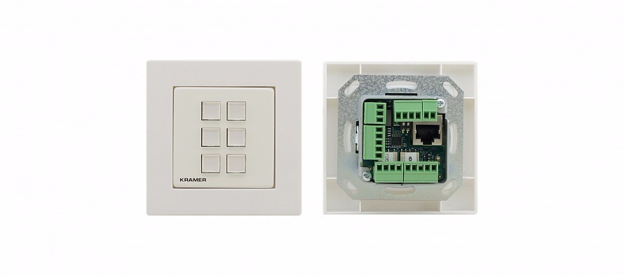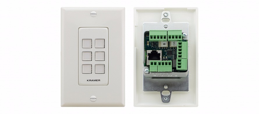 RC−306 – компактная 6-кнопочная панель управления, устанавливается в стандартную монтажную коробку размера 1-gang (US, EU, UK). RC−306 удобно использовать в качестве пользовательского интерфейса при работе с любой системой управления Kramer. Применение ПО K−Config и встроенные интерфейсы входов/выходов делают панель полноценным независимым контроллером. RC−306 прекрасно подойдёт для управления комплексными мультимедийными системами, например.