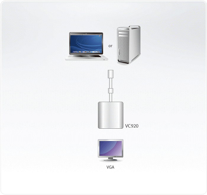 VC920-AT – Адаптер Mini DisplayPort – VGA ATEN VC920 позволяет подключать устройство с портом Mini DisplayPort к дисплею с разъемом VGA