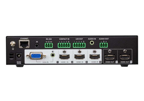 Презентационный коммутатор, объединяющий функции матричного видео переключателя True 4K масштабатора True 4K, аудиопроцессора и аналого-цифрового конвертера в одном компактном устройстве, которое легко монтируется под стол или в стойку.