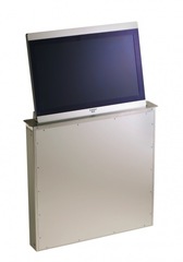 Классический моторизованный монитор Element One с экраном FullHD для интеграции в столешницу с электронным приводом, поднимающим и опускающим монитор вертикально. Автоматический механизм наклона монитора на угол до 15 градусов (версия tilt)