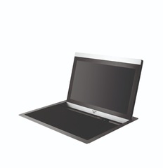 При нажатии на кнопку управления или поступлении внешней команды, монитор плавно откидывается назад на угол 110º, после чего из образовавшейся ниши автоматически поднимается полка, на которой может размещаться клавиатура.