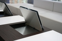 Возможность изменения угла наклона монитора в широких пределах позволяет эффективно работать с информацией в изменяющихся условиях, сохраняя при этом наилучший обзор и визуальный контакт с участниками переговоров.