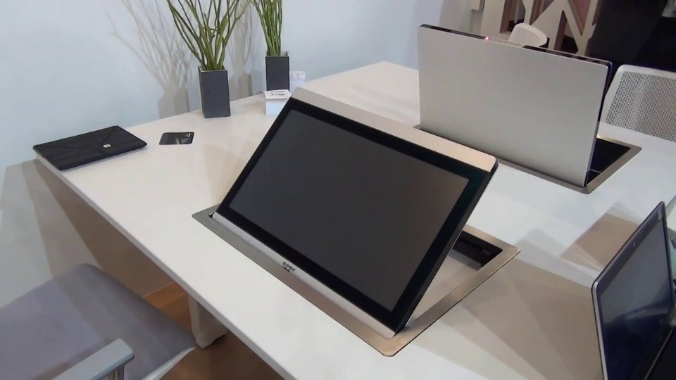 Versis – это серия моторизованных мониторов, которые складываются в столешницу экраном вверх и обеспечивают возможность постоянного доступа к информации.