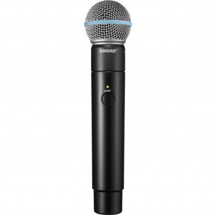 Надежный и легкий ручной передатчик со встроенной антенной и капсюлем Beta 58A. Совместим с фирменными капсюлями вокальных микрофонов Shure.